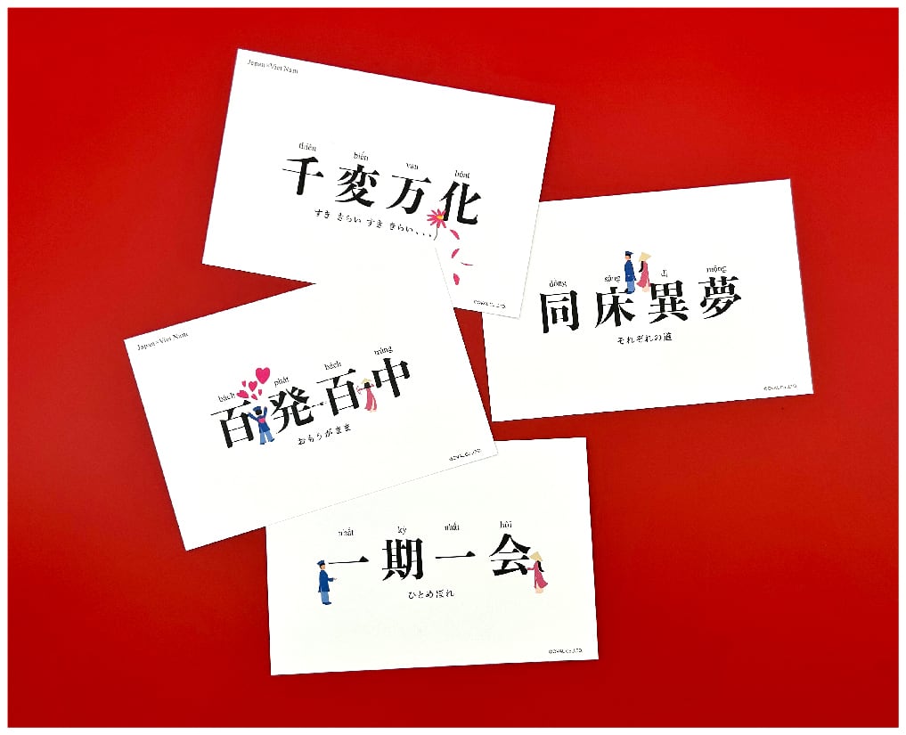 ベトナムと日本の四字熟語は、意味も発音も似ています!そんな互いの異文化に触れることもできるポストカードです。