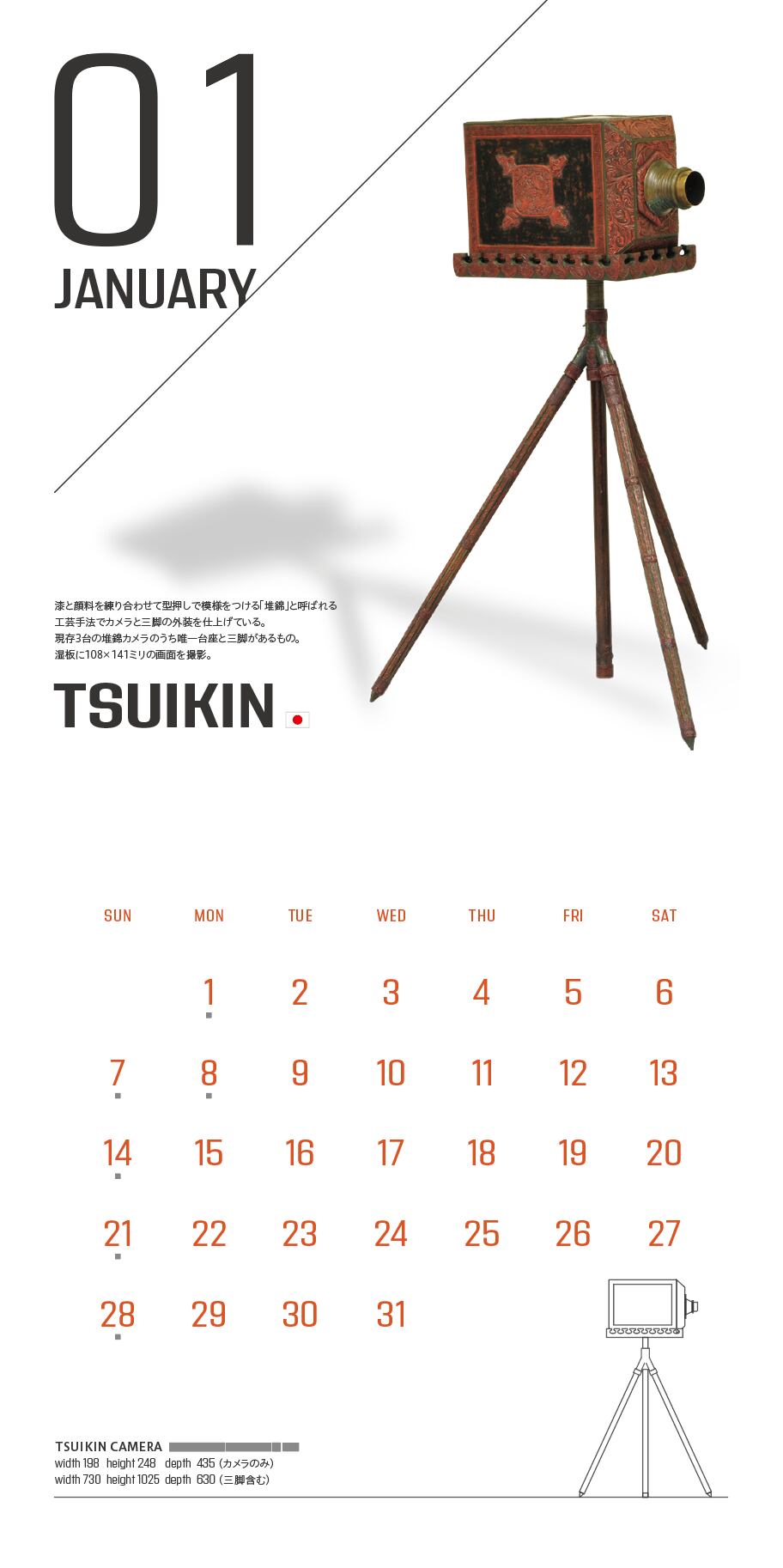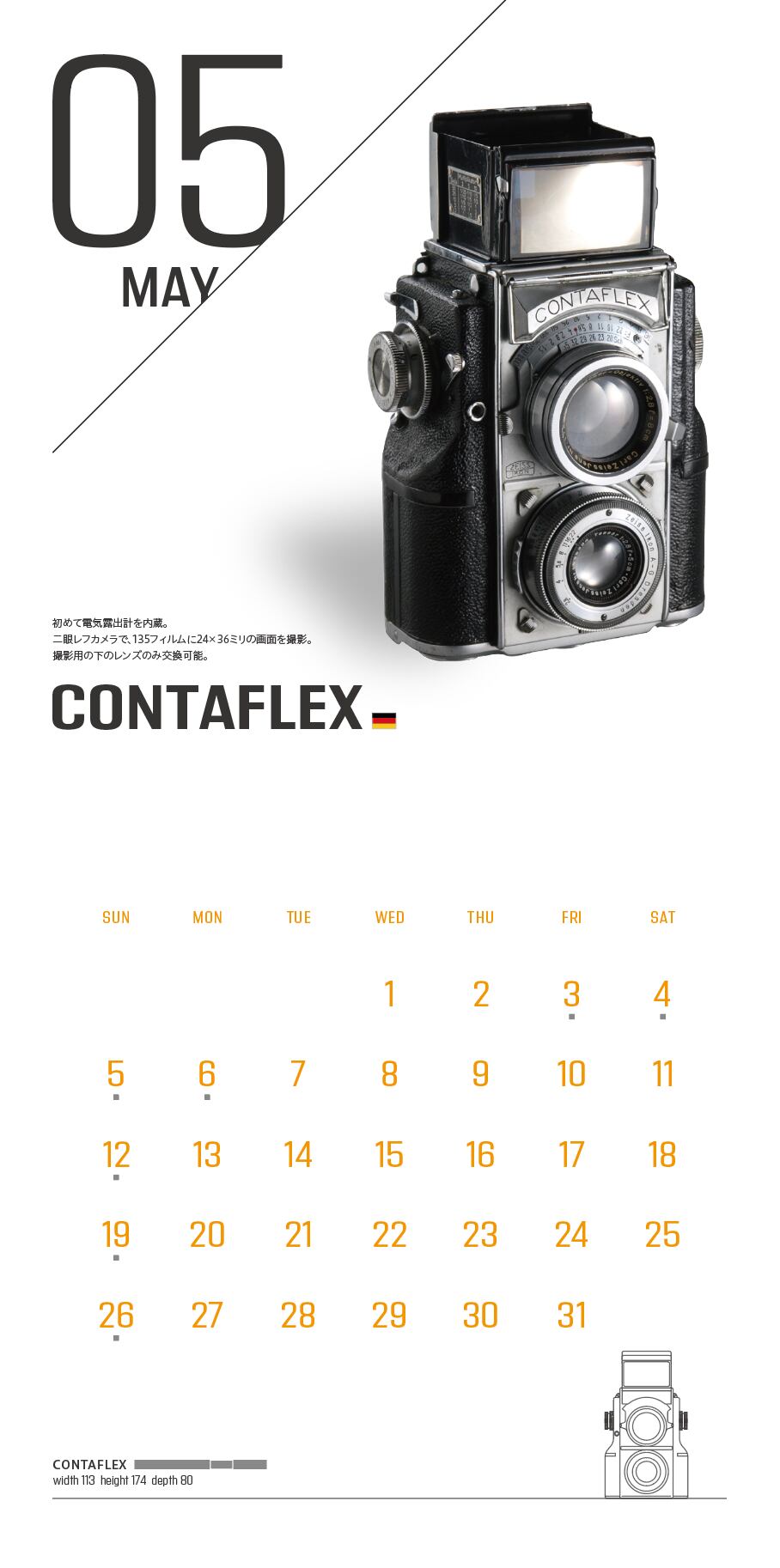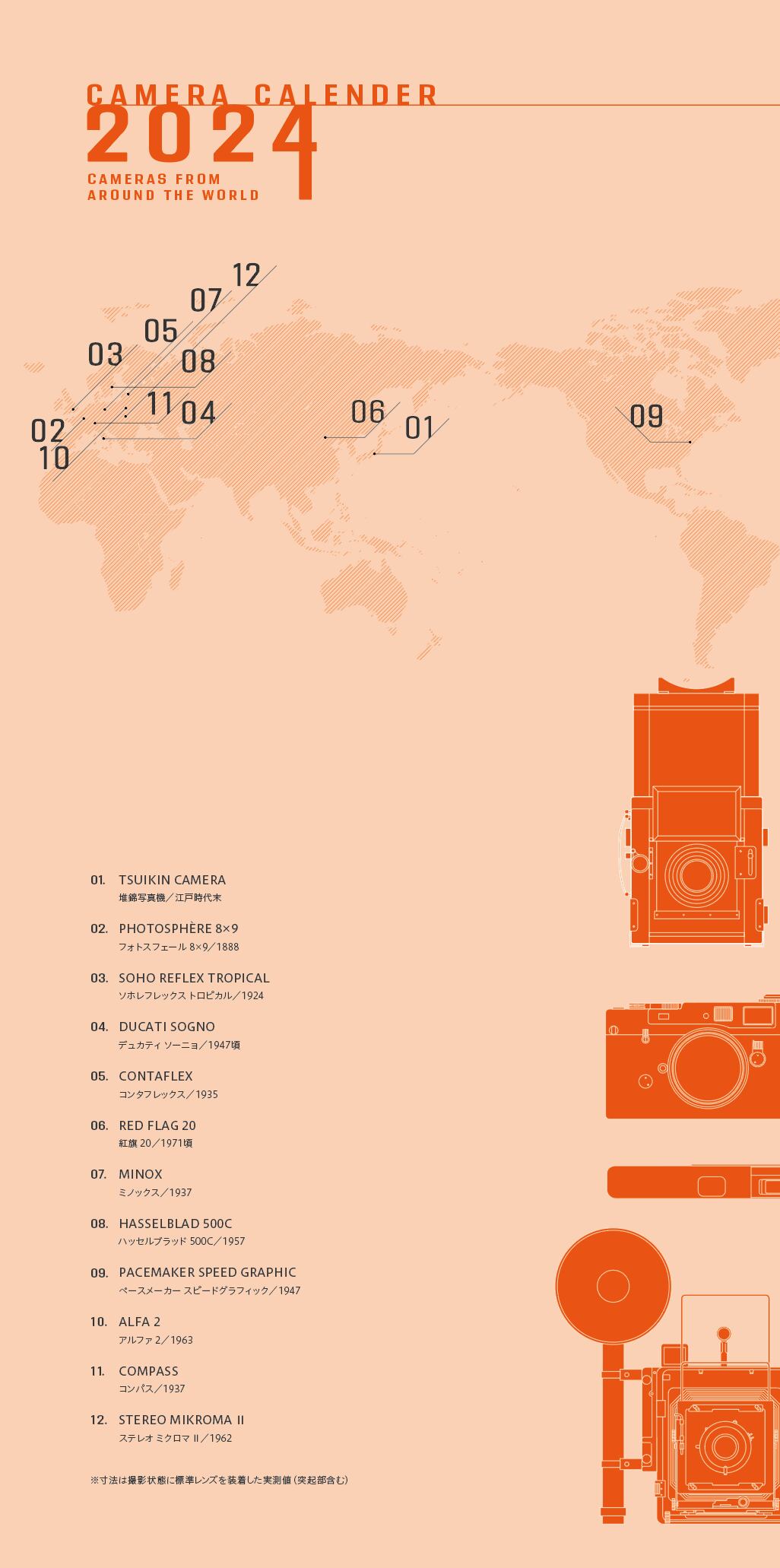 世界の個性豊かなクラッシック・カメラを月毎にご紹介する壁掛けカレンダーです。